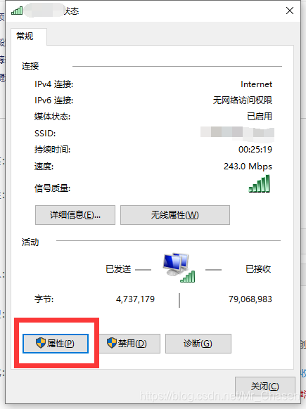 3) 点击所连接的网络,进入链接网络状态界面: