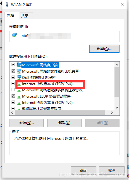 4)点击”属性“按钮进入之后双击“Internet协议版本4(TCP/IPv4)”项: