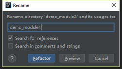 右键单击模块,Refactor>rename,弹出如下窗口