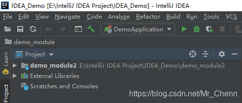 可以看到,这里显示了之前填写的模块demo_module,即demo项目下面有一个名为demo_module的模块。一个项目下面可以有多个模块,下面再讲讲模块的操作。