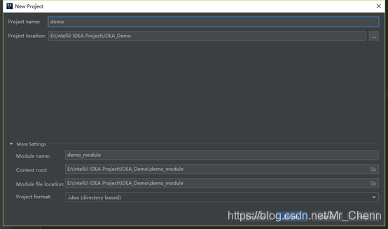 选中Rename directory,填写demo_module1,这样项目存放的目录就更改完成了。