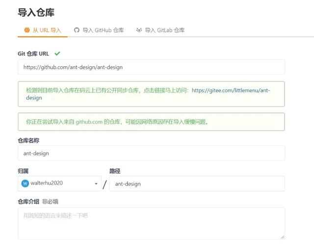 2.在导入页面中粘贴你的Github仓库地址,点击导入即可: