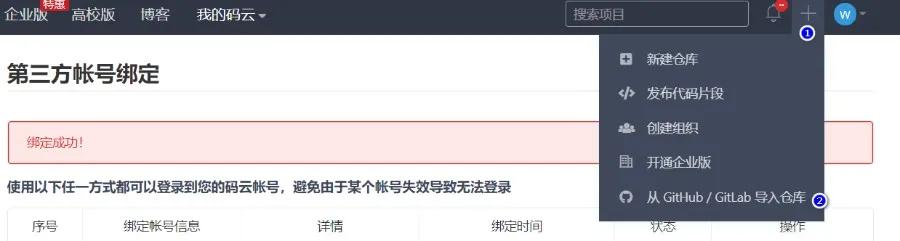 1.访问gitee网站:https://gitee.com/ 并登录,在顶部选择“从GitHub/GitLab导入仓库” 如下: