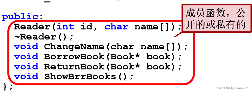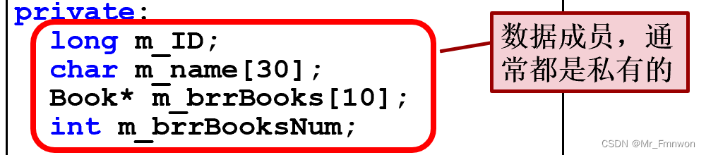 - 数据成员一般放在private部分;也可以放在public部分,但不提倡