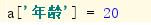 在字典中,键是不可改变的(数字,字符串,元组),但值是可以改变的,比如改变上述字典中的年龄为20,可以这样写: