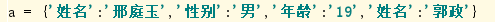 则a[‘姓名’]输出的结果会是 ‘郭政’。