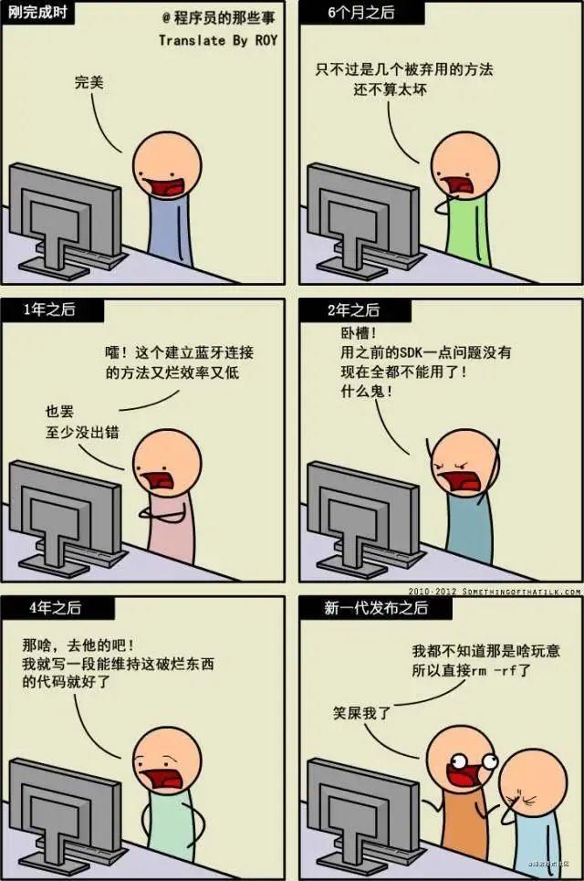 但是出来混,迟早都要还的,在未来代码一旦暴雷,必定花费数倍于最初的时间和精力去弥补。