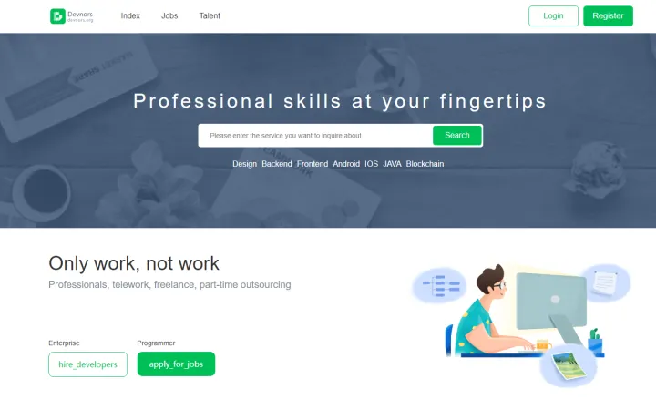 国内领先的中高端程序员自由工作平台,可以实现自由工作、远程工作、兼职工作。为中高端程序员提供稳定的线上工作机会,还有运营、设计等互联网岗位也有相应工作发布。
