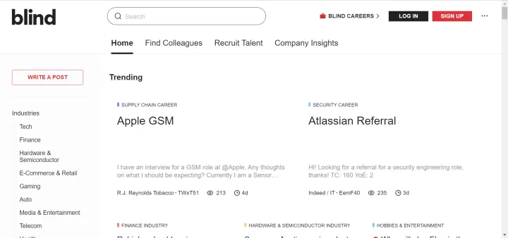 全球知名的职场吐槽网站,英文圈使用较多,一般看看国外大厂鸡毛蒜皮的事,还有一些面试经验分享。