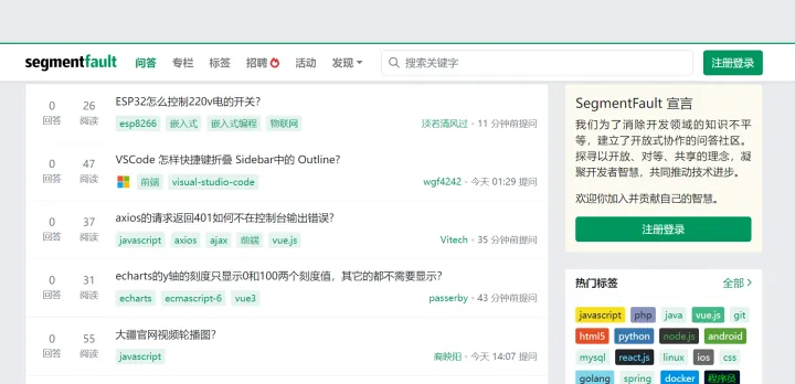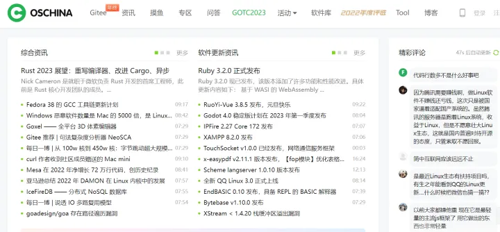 目前国内知名的开源技术社区,社区有 500 万开发者活跃,有资源、咨询、技术问答以及资源等等。