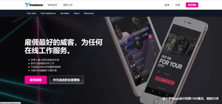 不仅仅是程序员外包接单,你能想到的各种在线工作都能在这里找到。作为全球最大的自由雇佣平台,freelancer聚集了一大堆优秀的自由职业者,同时也有大量的企业会在这里发布需求,你可以在这里看到各种各样的工作需求,发现不同的商机。