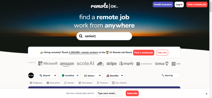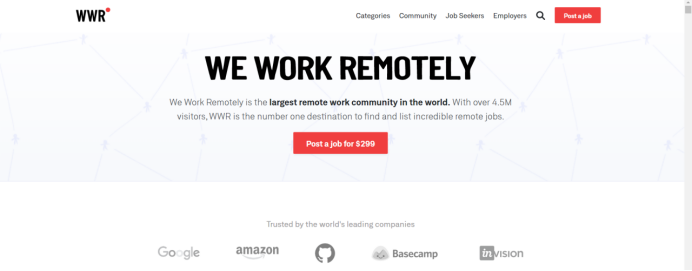 又名WWR,是一个国外知名的自由远程工作平台,拥有450w的用户。无论是设计、产品、技术、管理等相关的远程工作都可以在这里找到。