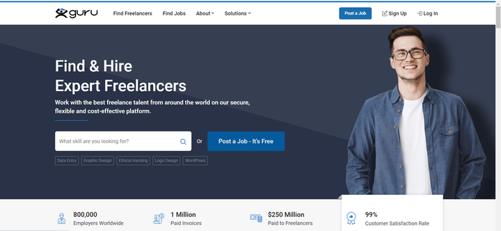 就像网页logo说的,find&hire expert freelancers,这是一个综合的自由远程工作平台。无论是技术、开发、运营、产品,甚至各类的兼职都可以在这里找到,自由度更高,但筛选起来难度也更高一点。