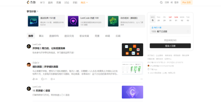 LeetCode 是一个知名的在线算法题库,也是一个非常实用的刷题工具。你可以在LeetCod上系统地练习编程算法,提升自己的编程水平。 上面的编程题覆盖了栈、堆、线段树等算法和数据结构的知识点,难度从易到难都有,适合不同水平的开发者进行练习。而题目下方的用户讨论和剖析则可以帮助开发者更好地理解算法思路和实现细节。