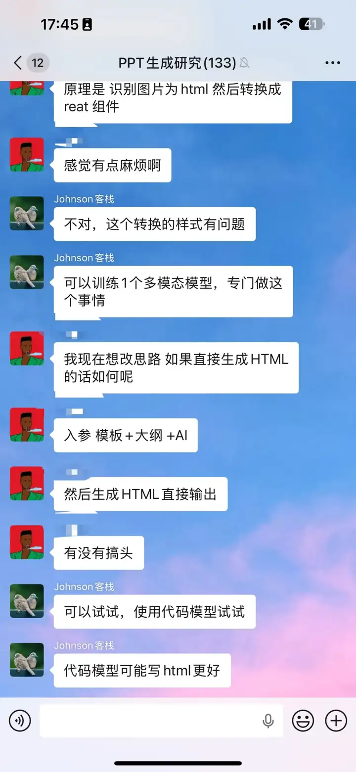 还有很多网友给我提了不少新的功能改进想法。比如有人说,能不能支持根据上传的文件生成 PPT—— 有的用户不想联网搜最新资料,就想拿自己的一篇文章来做 PPT,那只要把文章传上来,系统就能照着文章生成对应的 PPT。另外还有两个还没实现的功能:一个是自动化相关的,还有一个是用 AI 生成模板。比如有些公司有自己专属的 PPT 模板,用户把模板传上来,AI 能先把模板转换成在线 PPT 格式,之后再照着这个模板的风格生成 PPT。这些都是网友给我的特别宝贵的建议,我也希望在不远的将来能把这些功能都实现。