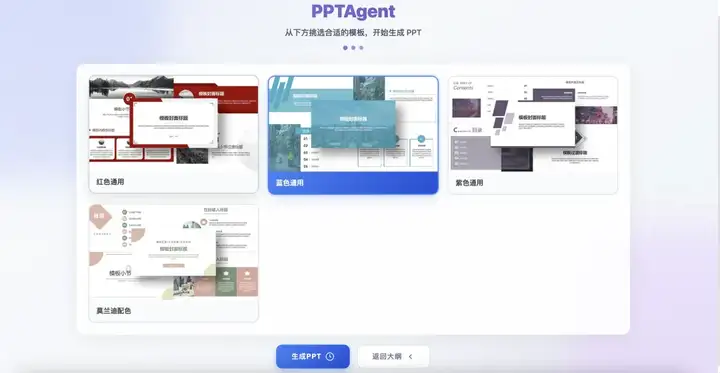 这个思路本身没问题,但因为第一版系统的那些缺点,后来我就想着开发第二套系统 —— 模板式 PPT。这一版解决了模板少、导出渲染不一致的问题,还把 agent 做了简化。为了提升速度简化 agent ,我又专门写了一套强化学习的训练代码。