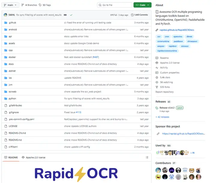项目最早是我们公司另一位同事搭建的,当时仓库名还叫“白嫖OCR”,后来觉得不够正式,就改成了RapidOCR。后来那位同事专注C++开发,而我作为算法工程师,一直深耕这个方向,就接手了项目主导开发,成了项目的主理人。