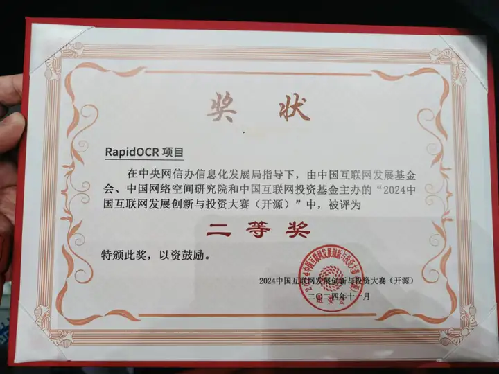 在维护RapidOCR的过程中,我积极主动地去和大家去交流、参加竞赛和加入开源相关的社区,提升项目的曝光。这也使得RapidOCR获得了多项竞赛奖项并被 openKylin 等社区认可。