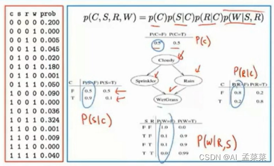 要求p(s=1)的概率,那么使用最最笨的方法就是,查左边的表,然后将s=1的情况全部加起来除以1,这个是很麻烦的为什么这么说呢,因为这必须站在上帝视角去看这件事情,因为现实生活中表肯定不会是最全的,然后还需要对表后边的一个概率进行一个计算: