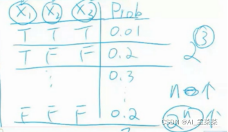 比如说我们就会知道P(Xi)的概率,也可以知道P(Xi|Xj)的概率,那么我们最终的目的就是想知道这个联合分布,那么但是如果我们通过对每个概率进行计算然后建模的话,复杂度会特别的高,因此呢需要找到一种有效的更好的方式对模型进行建模。