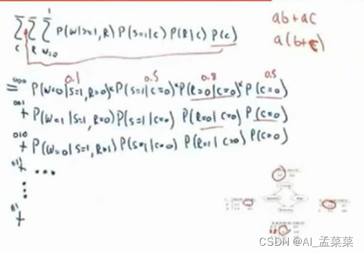 然后我们说这样算是比较麻烦的因此来说呢,就使用下边的方式对上述的全概率进行展开,这样是不是就由原来的15项,变成了现在的9项。