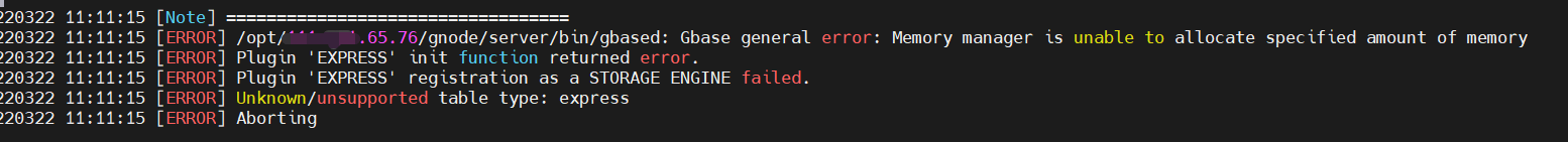 启动日志位于【/安装目录/IP/gnode/log/gbase/】下的system.log,报错信息如下: