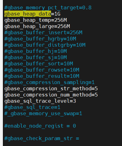 直接搜索heap关键字,将gbase_heap_data、gbase_heap_temp、gbase_heap_large,打开注释,以降低启动内存。