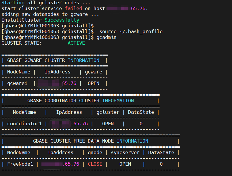 进行上述修改后GBase 8a的gbase组件可正常启动了!