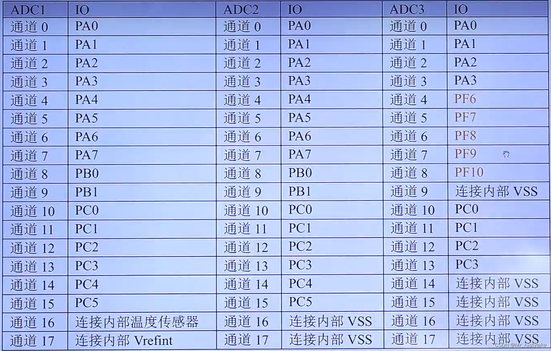 首先确定我们的最小刻度,Vref = 3.3V,所以0V <= Vin <= 3.3V,所以最小刻度是3.3V / 4096(2^12)。