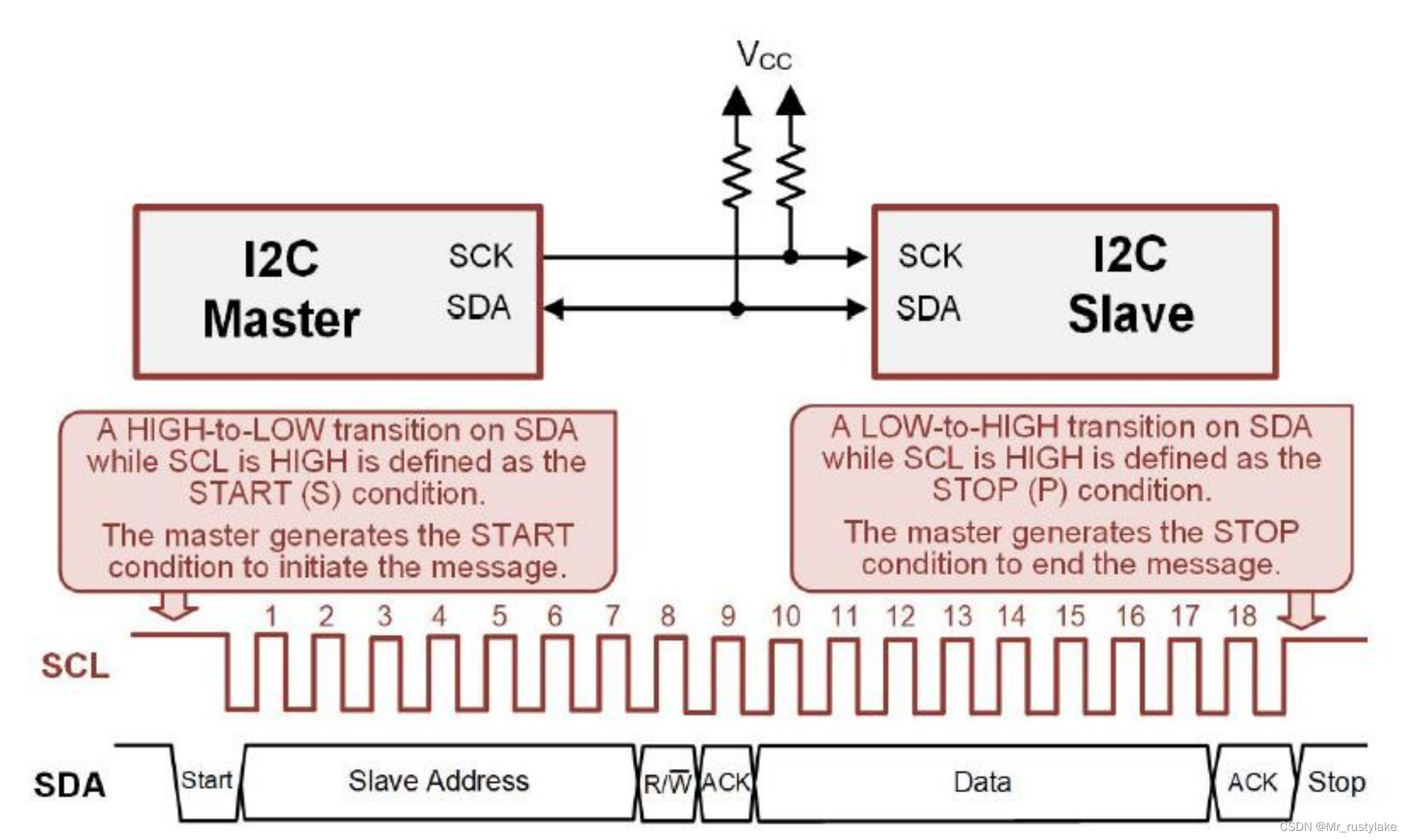 注意到我们采用的STM32F1系列里,SCL时钟线为PB6,SDA数据线为PB7。本次实验中,时钟线我们就正常的设置为推挽输入,数据线则设置为开漏模式(因为我们引入了外部上拉电阻,提供稳定的空闲高电平,而且我们的数据线既要作为输出,又要作为输入,用开漏输出模式,能很好地实现输入输出共用,避免频繁IO模式切换带来的麻烦)。编写代码时,注意完成发送的时候,主机要释放SDA。