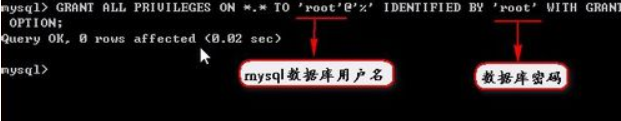 第四步:使用“GRANT ALL PRIVILEGES ON *.* TO 'root'@'%' IDENTIFIED BY 'root' WITH GRANT OPTION;”命令可以更改远程连接的设置。