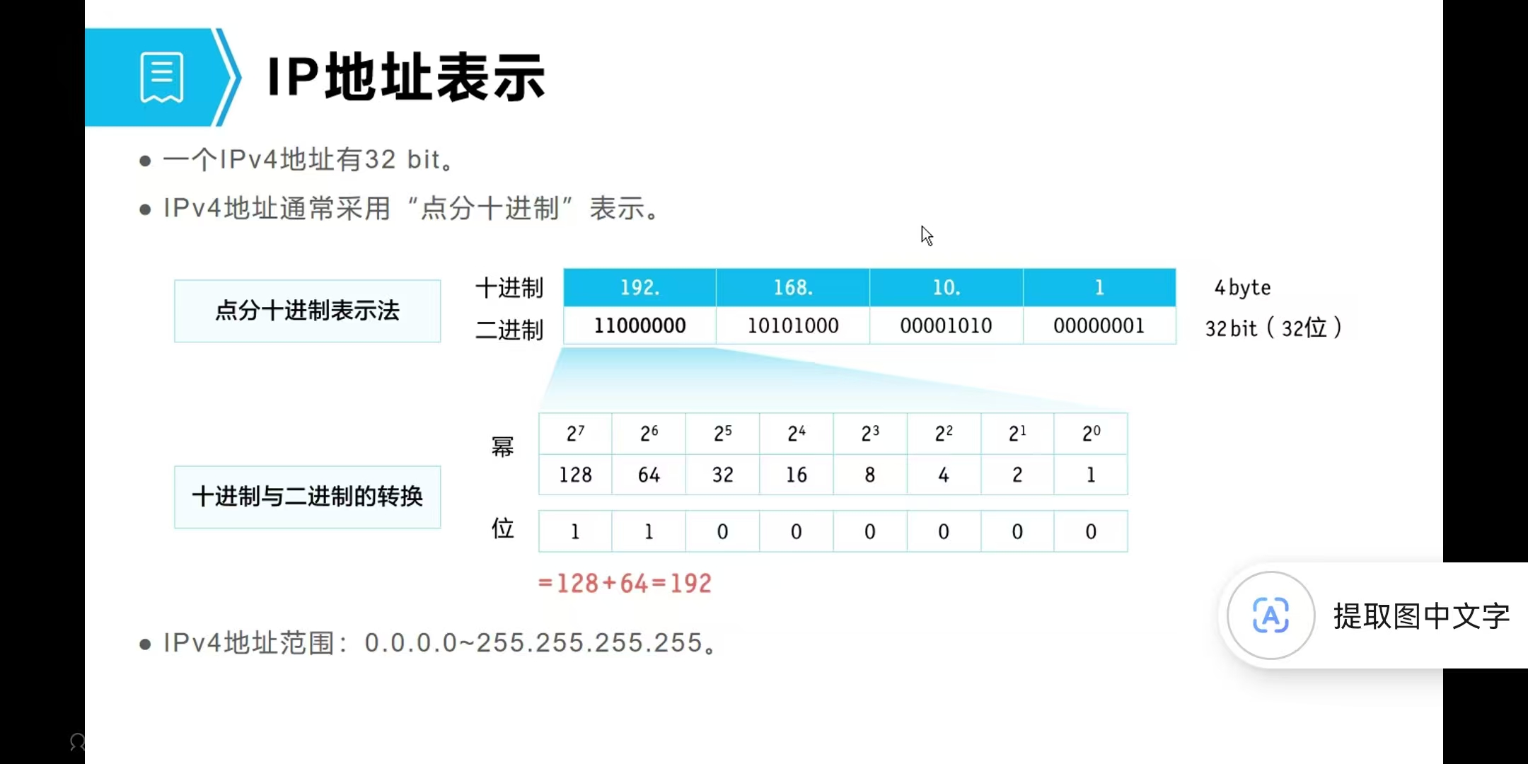 二进制转换需仔细,尤其注意子网掩码的边界(如