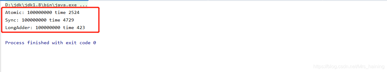 System.out.println("LongAdder: " + count1.longValue() + " time " + (end-start));