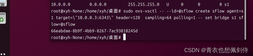 命令执行后,生成了一个UUID 66eabdae-8b9f-4bb9-8267-7ac93818245d,这是sFlow配置的唯一标识。