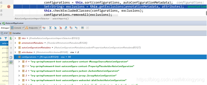 configurations大小为96,集合内都是要注入到Spring容器的组件的全类名,这些类都是以xxxAutoConfiguration结尾,验证了我们的结论。