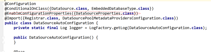 有了以上结论,我们现在来进入一个xxxxAutoConfiguration,这里就来就来看我们熟悉的DataSourceAutoConfiguration