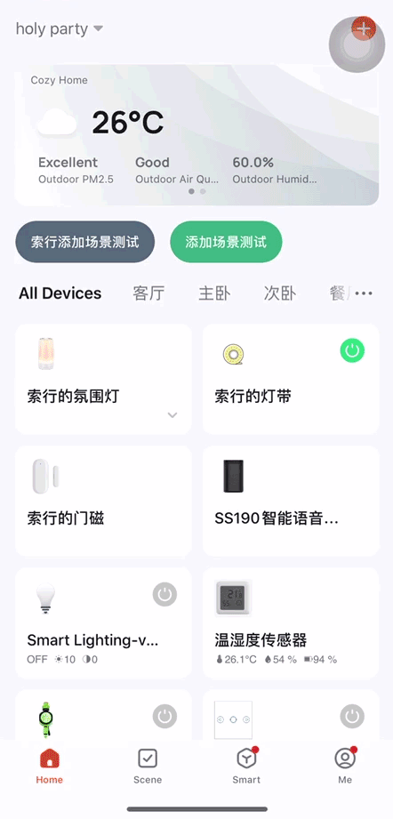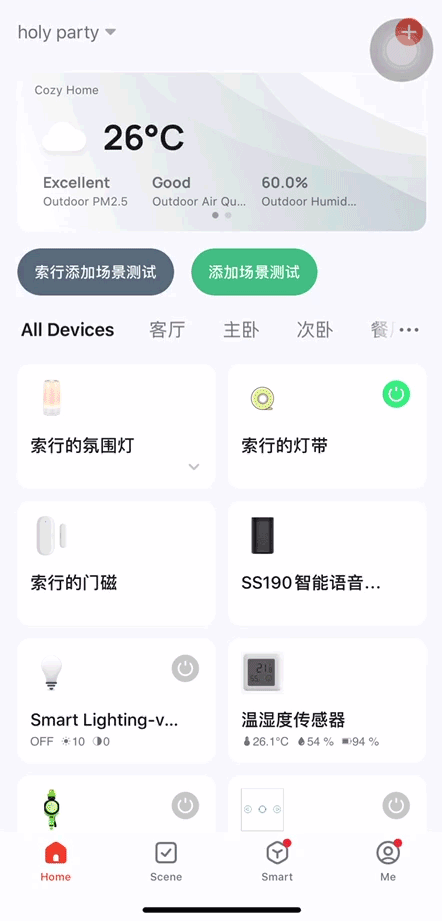 场景联动配置好之后,用户可以自定义设置功能点是否支持智能场景触发条件以及执行任务。添加了场景联动后,用户即可在 App 智能场景进行对应功能的设置。