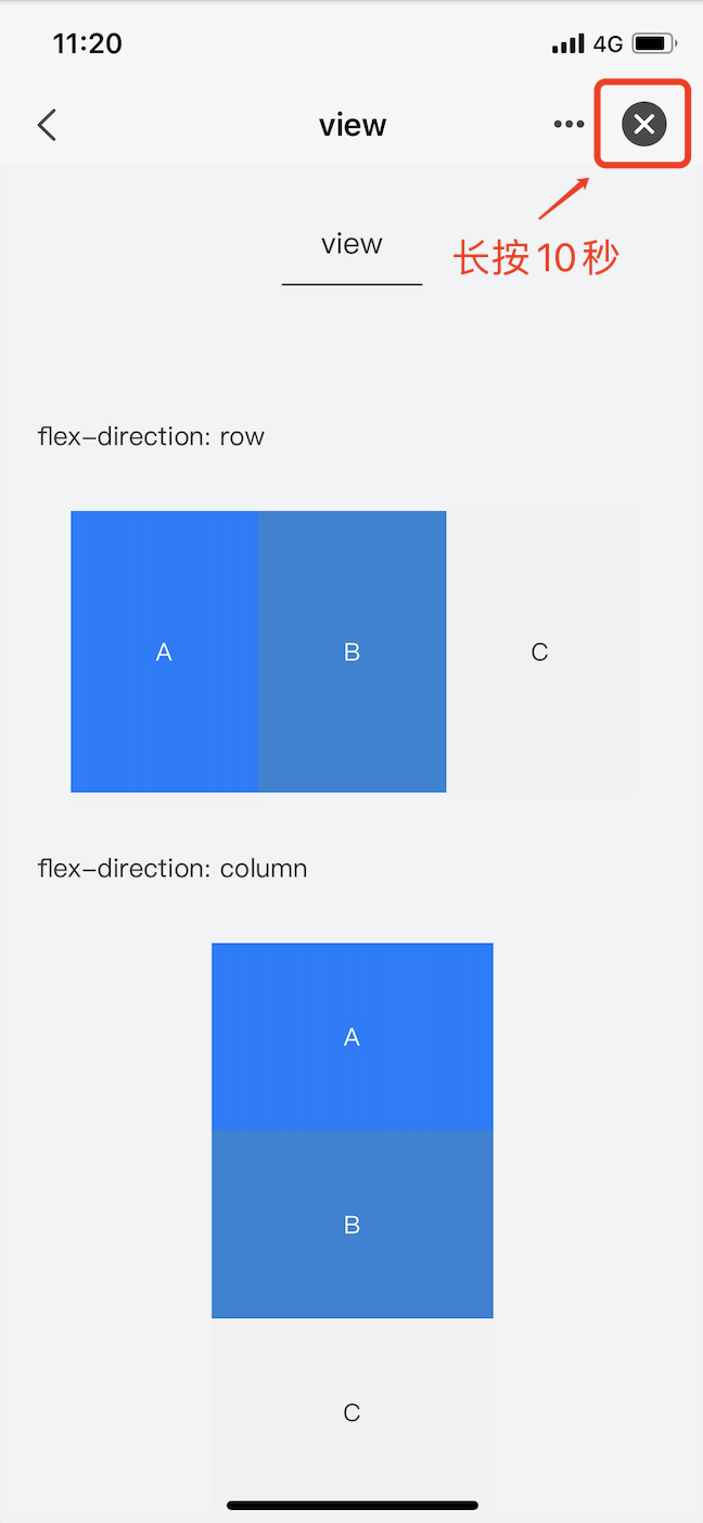 在 App 中可以查看集成的容器版本、Kit 版本信息。在小程序右上角胶囊处,长按 关闭 按钮 10s,即会弹出相关信息。
