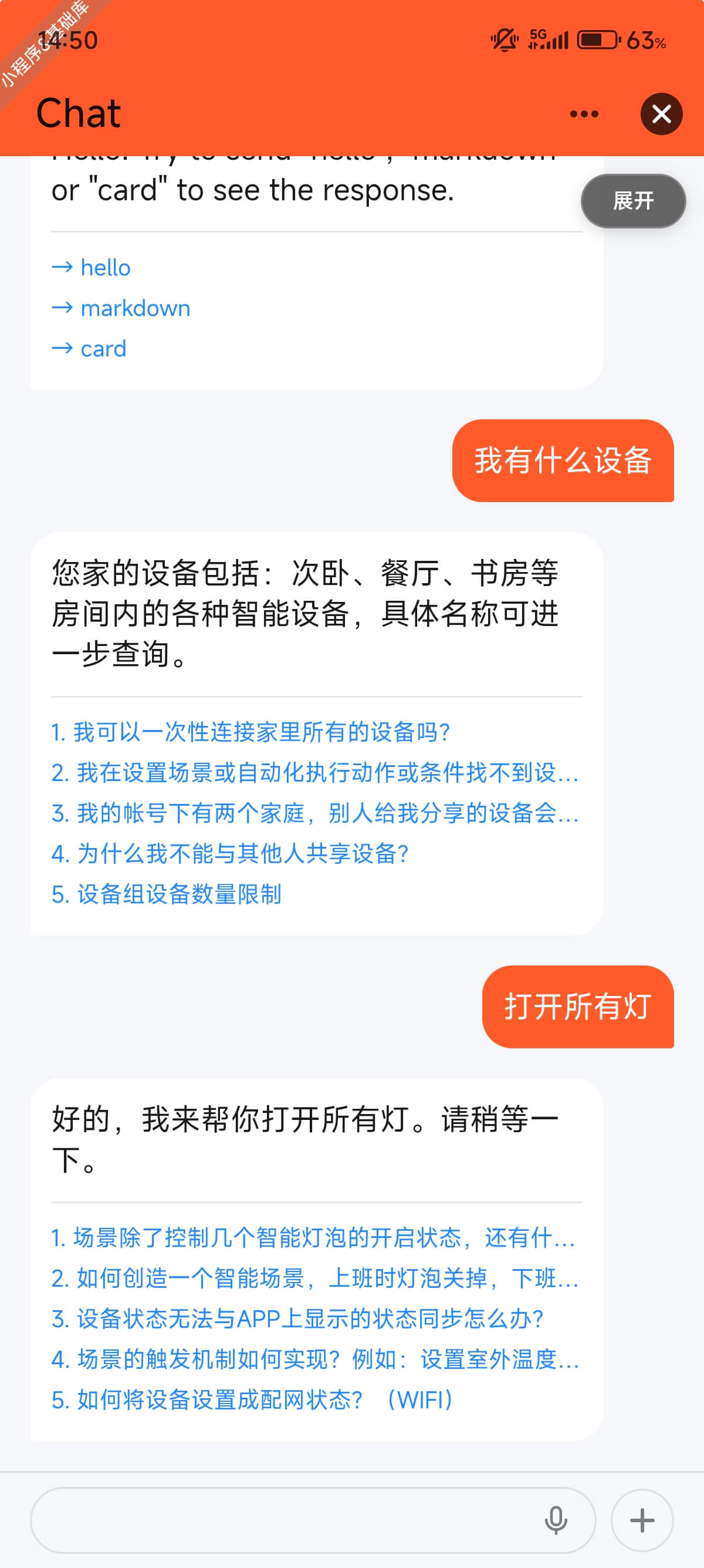 - 再次真机预览您的小程序,与智能体对话,尝试控制设备。