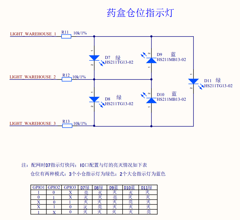 我们选用指示灯指示药仓,达到提醒服用指定药物的功能。