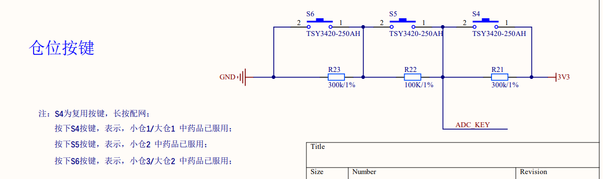 仅采用行程开关只能了解到是否有打开药盒的行为,不能确定是否有服用指定仓位的药。为此,我们增加了仓位按键,服用不同仓位的药品后,按下对应的仓位的按键,给到主控单元信号反馈。