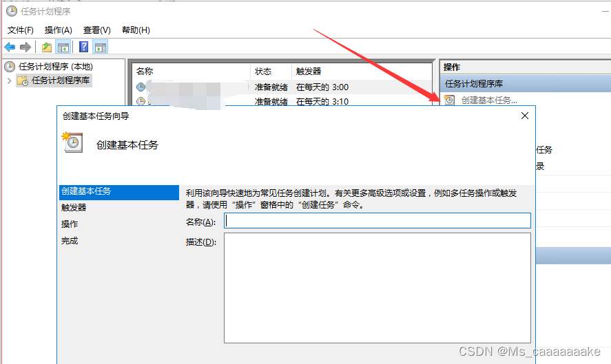 打开点击创建基本任务进行细节的定时任务设置操作