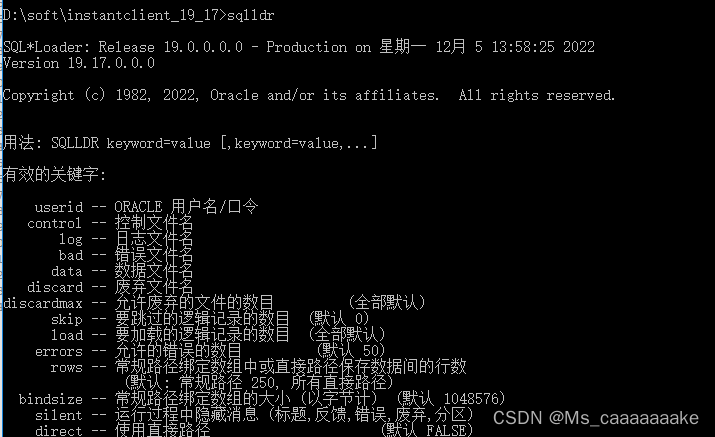 下载好以后解压,会得到一个命名为instantclient_19_17的文件夹,打开里面会有sqlldr.exe的文件