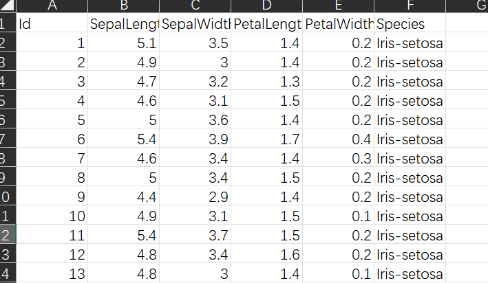 可以看到数据集为150行,6列的数据集