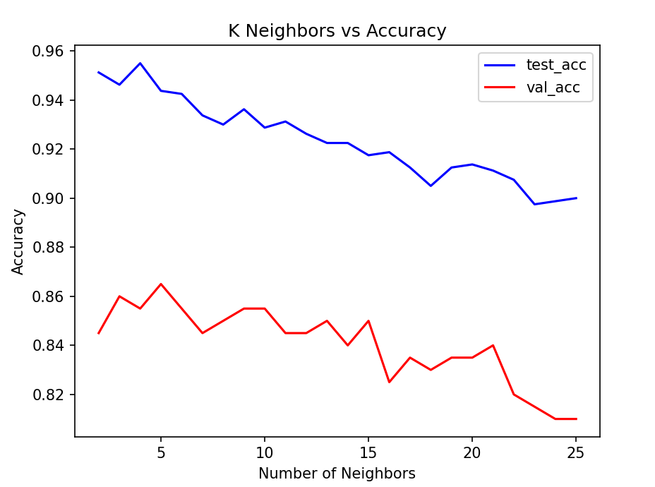 val_acc.append(np.mean(cross_val_score(knn, x_test, y_test, cv=kfold)))