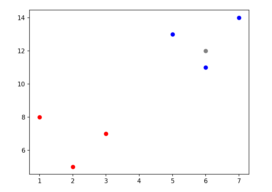 有两类点,红色与蓝色,这时我们再加入一个灰色的点
