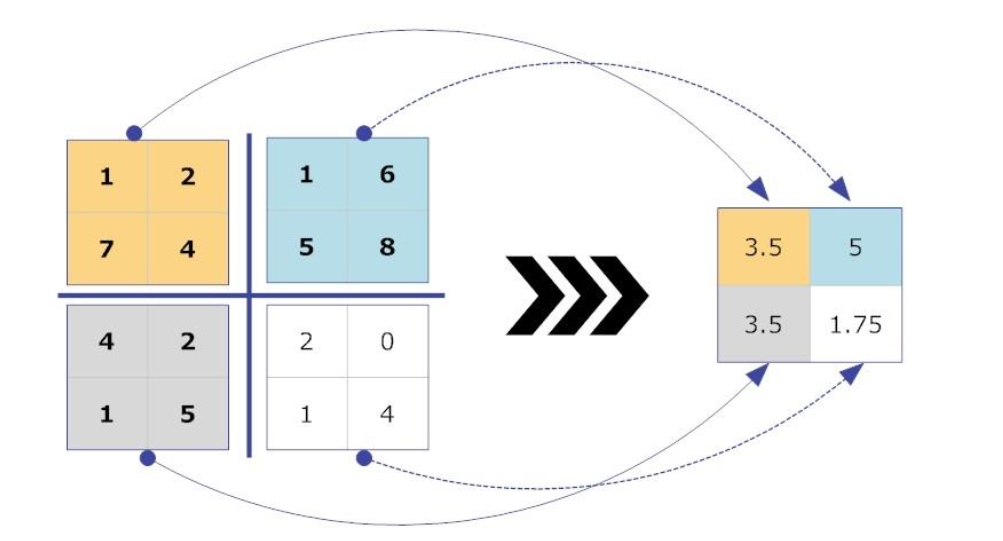 池化层简而言之是用来降低特征图尺寸,保留重要特征的,提取区域就是池化层的大小,主要的池化层有两种,平均池化与最大池化