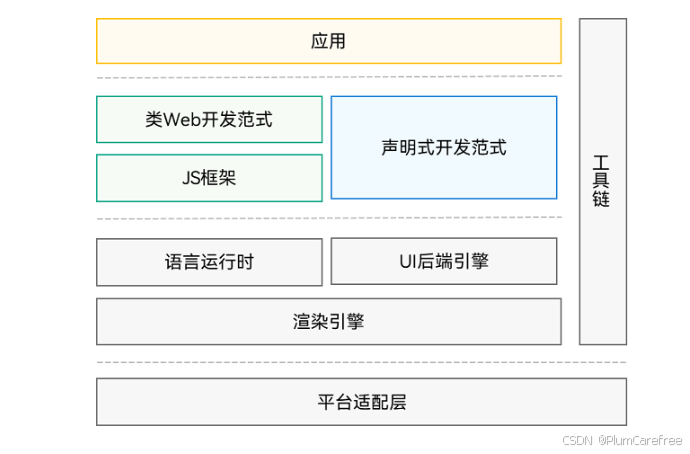 引擎层(声明式UI后端):依靠编译器、运行时、图形引擎