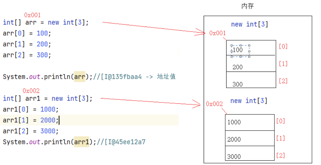 System.out.println(arr2[1]);//输出1索引上的元素 0