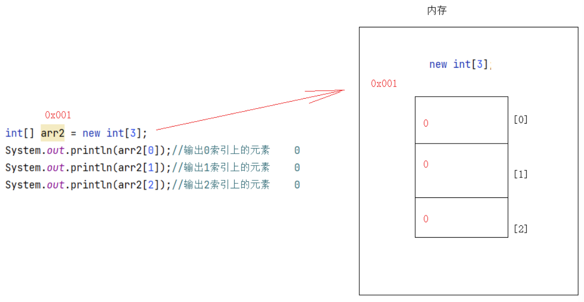 System.out.println(arr2[2]);//输出2索引上的元素 0